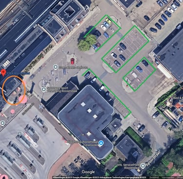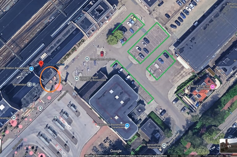 Achter de fietsenstalling op het Stationsplein is voldoende parkeergelegenheid. Vergeet niet je parkeerapp aan te zetten om een boete van €82 te voorkomen.